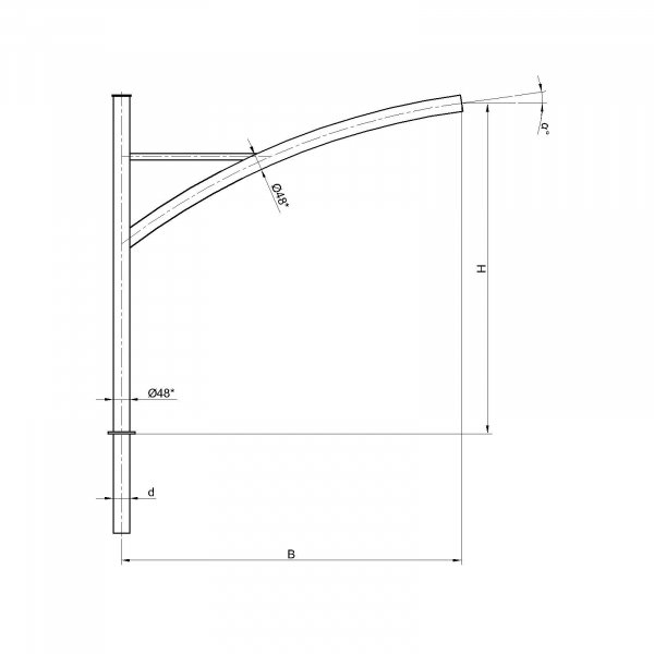 Однорожковые кронштейны К76-1,0-1,0-1-1 предназначен для крепления светильника на трубчатой опоре освещения. Завод опор освещения «Альдекс» изготавливает однорожковые консольные кронштейны из стального проката. Собственное производство позволяет выполнять изделия надлежащего качества и в кратчайшие сроки. Конструкция однорожковых кронштейнов К76-1,0-1,0-1-1. Конструкция консольных однорожковых кронштейнов К76-1,0-1,0-1-1 представляет собой гнутую металлическую трубу заданных размеров.