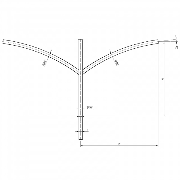 Двухрожковые кронштейны К9-2,5-2,0-1-1 предназначены для крепления светильника на трубчатой опоре освещения.
