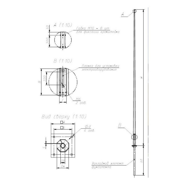 Установка опоры производится на железобетонный фундамент.